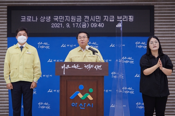 [충청뉴스큐] 아산시가 정부 5차 재난지원금 지급 대상에서 제외됐던 아산시민 5만281명에게도 1인당 25만원의 국민지원금을 지급한다.