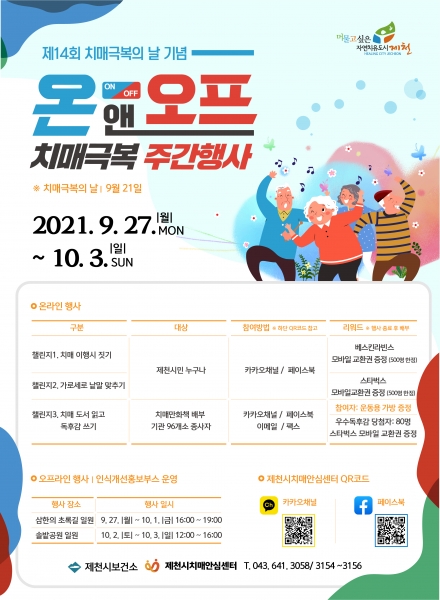 [충청뉴스큐] 제천시가 제14회 치매극복의 날을 맞아 오는 27일부터 10월 3일까지 일주일간 치매극복 주간행사를 개최한다.