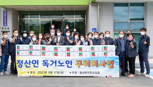 [충청뉴스큐] 청양군 정산면거점센터 자원봉사회원 18명이 지난 17일 추석 차례상 꾸러미를 정성껏 마련해 소외계층 25가구에 전달했다.