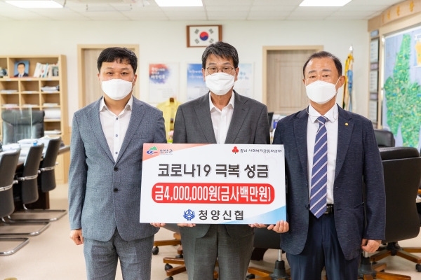 [충청뉴스큐] 청양신협이 코로나19 극복과 사회취약계층 지원을 위해 이웃돕기 성금 400만원을 지난 17일 청양군에 기탁했다.