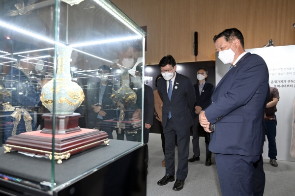 특히 선물 중에서도 무령왕릉 출토 유물 중 돋보이는 금속 유물과 통하는 작품을 선정했다.