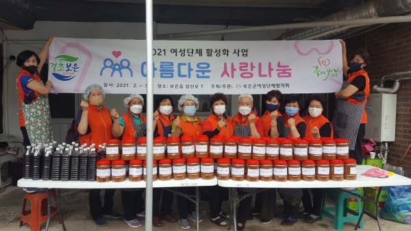 [충청뉴스큐] 보은군여성단체협의회는 지난 27일 정정화 회장 자택에서 이웃사랑을 위한‘사랑의 된장·간장 나눔 행사’를 진행했다.