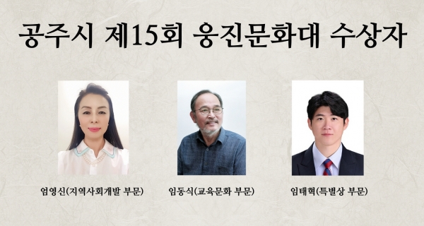 한편 이번에 선정된 3명의 수상자에 대한 시상은 오는 10월 5일 개최되는 ‘공주시민의 날’ 행사에서 열릴 예정이다.