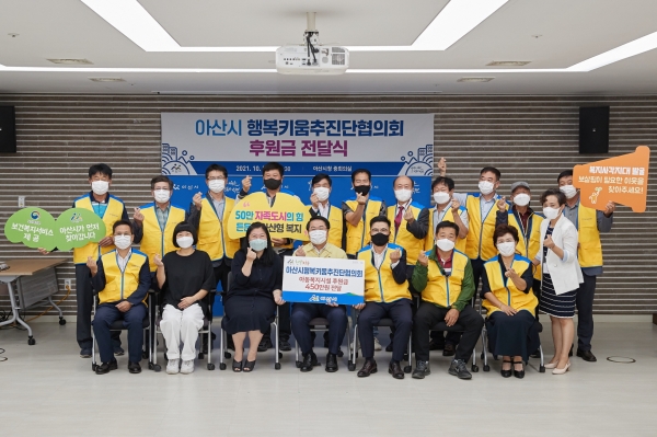 [충청뉴스큐] 아산시행복키움추진단협의회가 5일 아산시 관내 9개 아동복지시설에 사랑의 후원금 450만원을 전달했다.