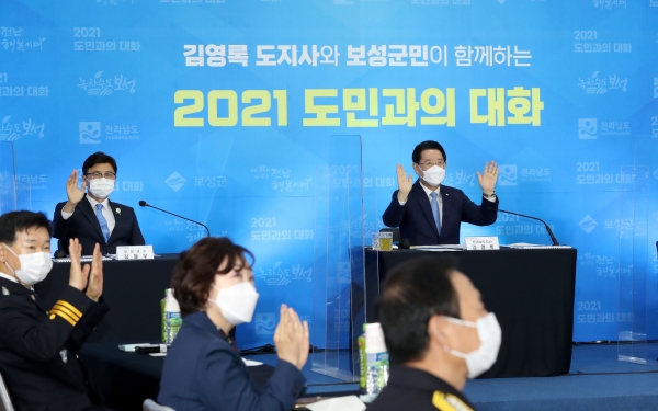 이날 도민과의 대화에는 코로나19 방역을 위해 김영록 지사와 김철우 보성군수, 김재철 보성군의회 의장, 임영수·이동현 전남도의원 등 11명만 현장 참석했다.