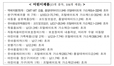 액체괴물에서 호흡기 질환을 유발할 수 있는 CMIT, MIT 물질이 검출되는 등 총 104개 제품에서 안전기준 부적합이 발생했다.