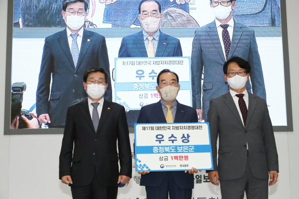 [충청뉴스큐] 보은군은 제17회 지방자치경영대전에서‘온가족이 함께 즐기는 스릴 힐링 만점 속리산테마파크’로 문화체육관광부 장관상을 지난 15일 수상했다고 밝혔다.