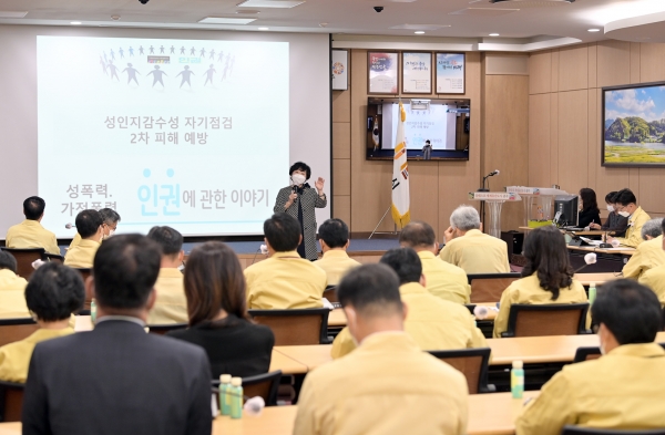 이날 교육은 코로나19 상황을 고려해 5급 이상 간부공무원은 대면 교육으로 진행하고 6급 이하 본청 및 읍면동 등의 직원들은 각 사무실에서 비대면 영상시청으로 진행됐다.