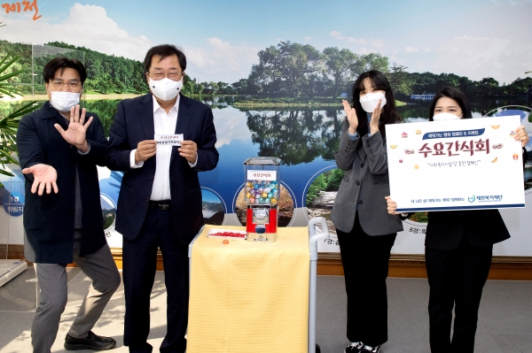‘수요간식회’는 관내 사회복지시설을 대상으로 매주 2~3곳을 무작위로 추첨·선정해 달달한 간식을 지원함으로써 직원들의 노고를 위로하고 관내 복지시설과의 유대감 형성을 위한 이벤트다.