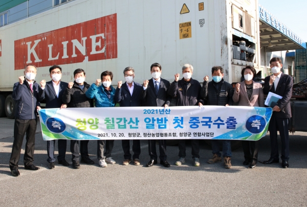 21일 청양군에 따르면, 하루 전인 20일 정산농협은 장평면 미당리 소재 경제센터에서 김돈곤 청양군수, 김봉락 정산농협 조합장, 생산 농가 등이 참석한 가운데 수출 기념식을 개최했다.
