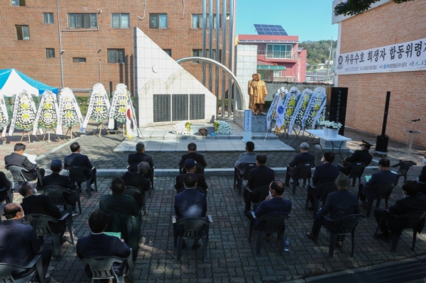 이날 합동위령제는 코로나19 확산 방지를 위해 참석인원을 최소화하고 규모를 축소해 추념사, 추도사, 헌사, 헌화 및 분향 순으로 진행됐다.