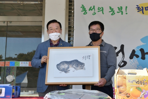특히 1호 나눔 경매에 김석환 군수가 양복과 넥타이, 그림 등 여러 점의 소장품을 직접 기부하며 경매행사에 힘을 보탰다.