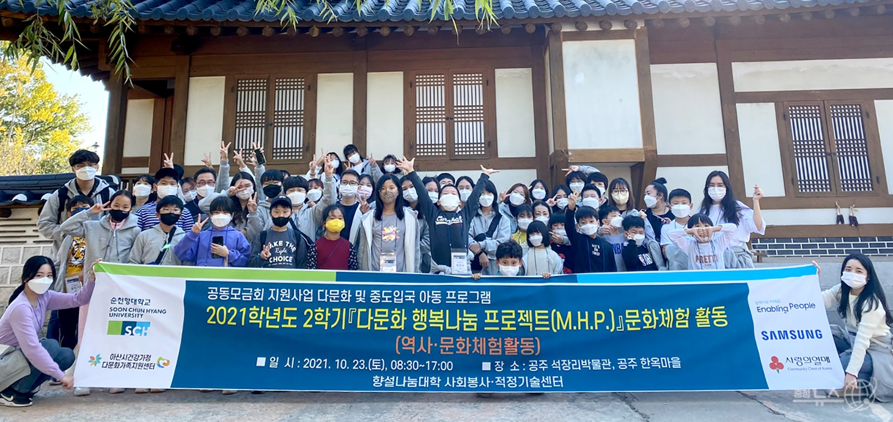 순천향대(총장 김승우)는 지난 23일 아산지역 다문화·중도 입국 가정의 아동, 학부모를 대상으로 한국의 역사문화 체험 프로그램을 진행했다“고 밝혔다.