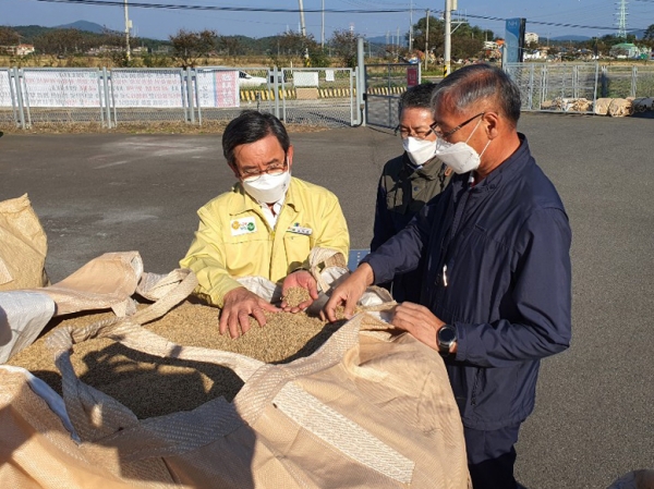한편 서천군청 농정과장은 서천군 공공비축미곡 매입품종은 삼광, 친들로 3,839톤 매입을 차질 없이 추진 중에 있으며 일정은 산물벼의 경우 10월25일부터 오는 11월20일까지, 건조벼는 11월 9일부터 11월16일까지 실시할 예정이라고 전했다.