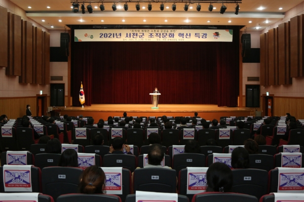 [충청뉴스큐] 서천군은 지난 2일 문예의 전당 대강당에서 공무원 170명이 참석한 가운데 ‘90년생이 온다’의 저자 임홍택 작가를 초청해 조직문화 혁신 특강을 실시했다.