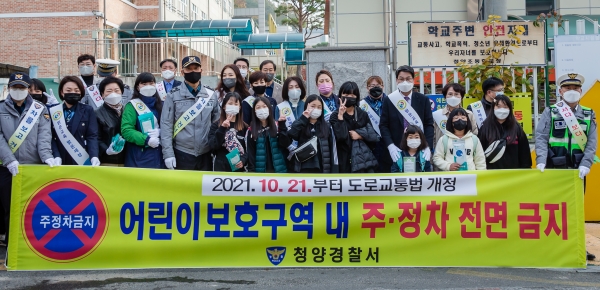 이날 캠페인에는 군청 공무원들과 청양경찰서 모범운전자회, 녹색어머니회, 청양초 교직원 등이 함께 참여했다.