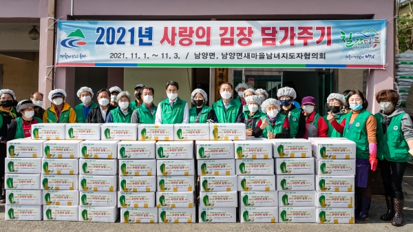 김돈곤 군수는 “봉사자들의 정성이 가득 담긴 김장은 코로나19로 힘든 시기를 보내고 있는 어려운 이웃들에게 따뜻한 선물이 될 것”이라고 말했다.