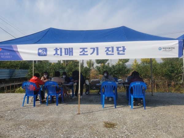 [충청뉴스큐] 아산시 치매안심센터가 지난 10월 읍면동 찾아가는 보건 복지 상담창구 운영에 참여하며 치매선별검사를 진행했다.
