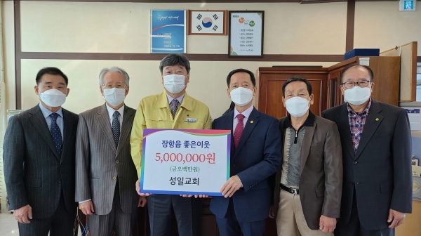 장항 성일교회는 학생 장학금 지원, 소외 어르신 지원, 국가유공자 초청행사 등 다양한 선행을 실천해오며 아동부터 노인까지 모든 계층의 어려움을 보듬는 이웃사랑에 앞장서 ‘지역과 함께 상생하는 교회’로 귀감이 되고 있다.