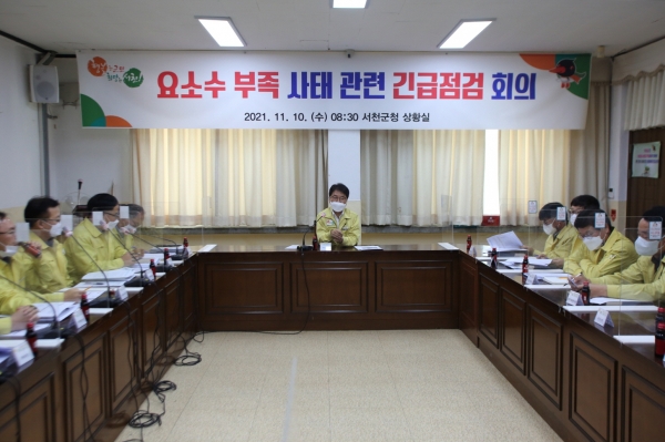 [충청뉴스큐] 서천군이 10일 군청 상황실에서 이교식 서천부군수 주재로 요소수 부족 사태에 따른 분야별 긴급점검회의를 가졌다.