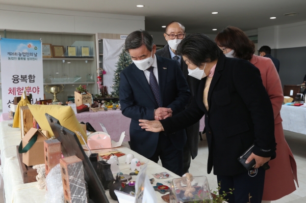 이날 행사는 농업인의 날을 맞아 농업관련 단체와 기관이 모두 참여한 가운데 지역농업 발전에 기여한 우수 농업인 27명을 시상하고 농촌융복합산업 성과를 한눈에 살펴볼 수 있는 농촌 가공, 농산물 체험 분야 등 농업인 성과 전시회도 함께 추진됐다.