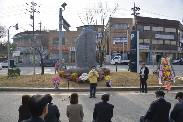 연재선생공적비건립추진위원회가 주관하고 철저한 방역수칙 준수 속에 치러진 이날 제막식에는 박정현 부여군수와 윤형원 국립부여박물관장, 故홍사준 선생의 유족 등 약 60여명이 참석했다.