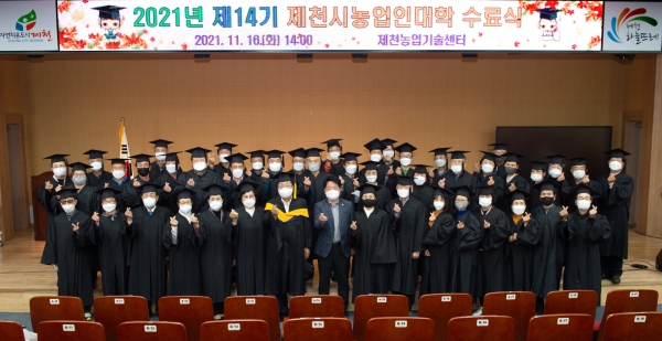 2008년도에 설립한 제천시농업인대학은 제1기 58명을 시작으로 이번 제14기 친환경유기농업학과 17명, 치유농업학과 45명 등 총 62명의 수료까지, 총 870여명의 전문농업경영인을 양성해 농산물의 고부가가치 창출 및 지역농업발전에 기여했다.