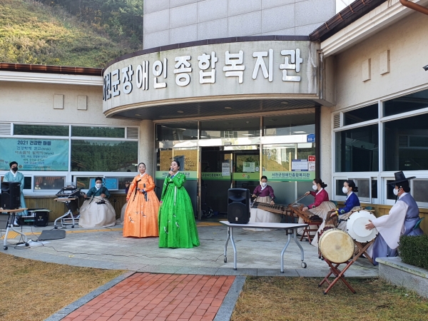 [충청뉴스큐] 서천복지마을 내 서천군장애인종합복지관에서는 지난 16일 부여충남국악단의 지원으로 복지관 잔디마당에서 ‘찾아가는 국악공연’을 진행했다.