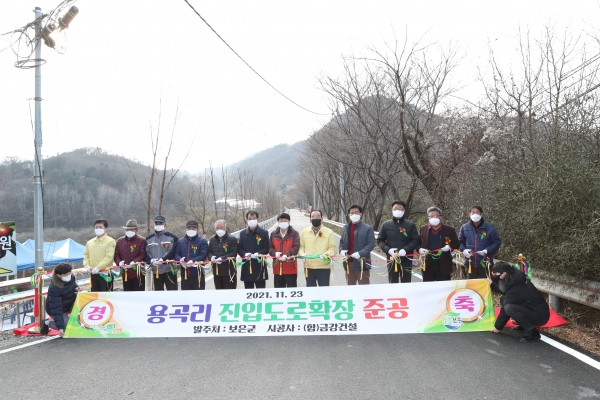 [충청뉴스큐] 보은군은 지난 23일 회인면 용곡리 일원에서 ‘용곡리 진입도로 확장공사’준공식을 개최했다.