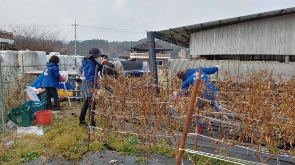 지난 23일 수한면 행정복지센터 직원 10여명은 수한면 발산리 소재 다문화가정의 농가를 방문해 고추밭 지주대와 비닐정리를 도왔다.