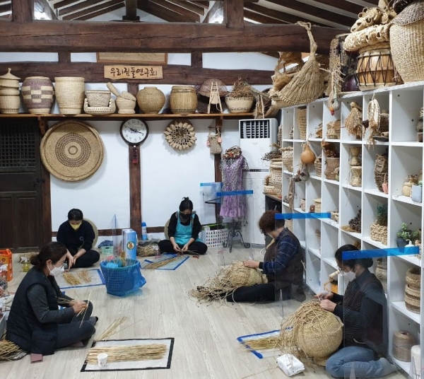 ‘짚풀공예 전통기술 전수사업’은 지역의 특화자원 등을 활용한 기술 전수로 취업 취약 계층에게 직접 일자리를 제공하고 지역경제를 활성화하기 위해 추진한 2021년 아산시 지역공동체일자리사업 중 하나다.
