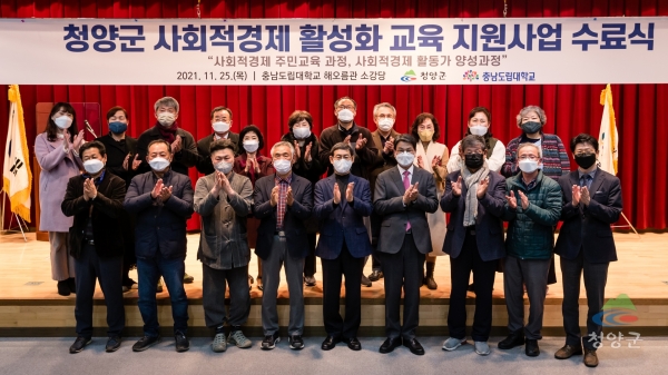 [충청뉴스큐] 청양군과 충남도립대학교가 지난 25일 충남도립대 해오름관에서 열린 사회적경제 교육과정 수료식을 통해 활동가 22명을 배출했다.