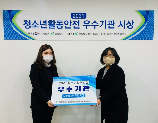 [충청뉴스큐] 제천시에서 운영하는 장락청소년문화의집이 지난 30일 충청북도청소년활동진흥센터 주관으로 열린 ‘2021년 청소년활동안전 우수기관 시상’에서 우수기관으로 선정됐다.
