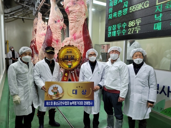 [충청뉴스큐] 홍성군은 한우 고급육 생산을 통해 홍성한우 브랜드 인지도를 높이고 한우산업의 경쟁력을 확보해 축산농가의 소득향상 도모하기 위해 지난 1일 홍성축산물공판장 ㈜관성에서 제2회 홍성군 한우협회 한우능력평가대회를 개최했다.
