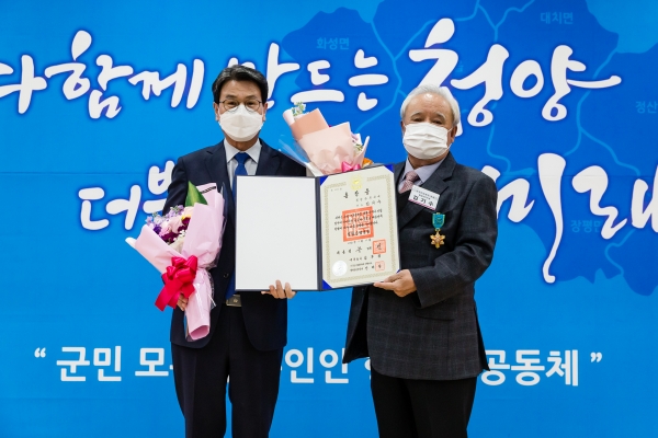 이날 청양군청 대회의실에서 김돈곤 군수로부터 훈장을 전해 받은 김 대표는 성공 귀촌인의 표상으로 널리 알려진 인물이다.