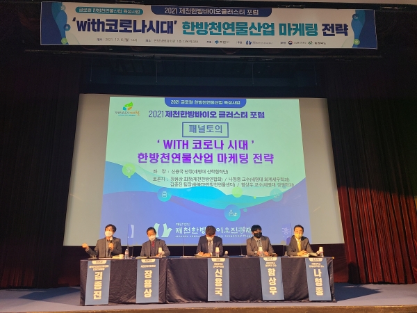 [충청뉴스큐] 제천한방바이오진흥재단주관으로 개최된 ‘2021제천한방바이오클러스터 온·오프라인 포럼’이 지난 6일 한방생명과학관에서 성황리에 끝마쳤다.