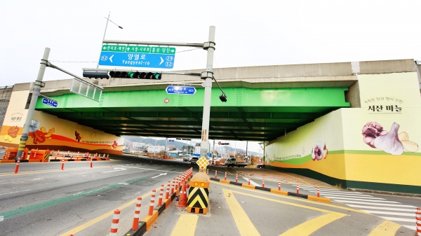 10일 시에 따르면 벽화는 너비 40m, 높이 4m 규모의 교각 좌우측에 그려졌으며 서산의 특산물을 활용해 쾌적한 가로환경을 조성했다.