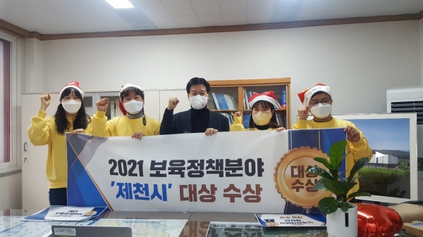 [충청뉴스큐] 제천시가 14일 보건복지부가 주관하는 ‘2021년 보육정책 우수 지방자치단체 평가’에서 최고상인 ‘대상’ 수상과 함께, 지난8일 배영석 제천시청 여성가족과 보육지원팀장이 ‘2021 보육 유공자 대통령상’을 표창해 겹경사를 맞았다.