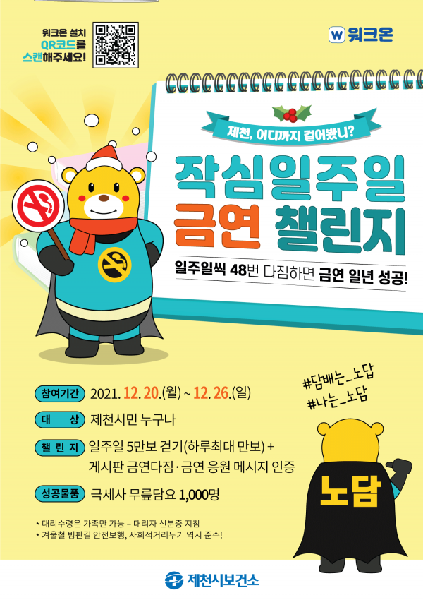[충청뉴스큐] 제천시 보건소가 ‘일주일씩 48번 다짐하면 1년 금연 성공’이라는 주제를 담아, ‘작심일주일 금연챌린지’를 진행한다.