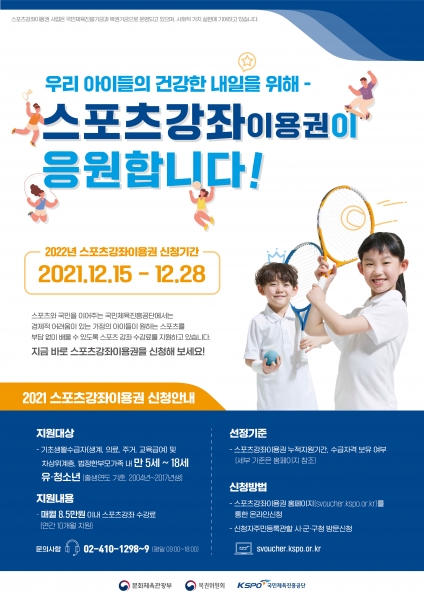 지원을 희망하는 군민은 국민체육진흥공단 홈페이지에서 지원대상자 명의로 회원가입 후 이용권 신청 탭에서 신청할 수 있으며 올해 지원받았던 대상자도 동일한 절차로 신청해야 내년에도 계속 지원받을 수 있다.