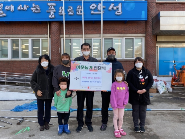 박성민 대표는 배우자 및 두 명의 자녀와 함께 원곡면 청사로 방문해 쌀을 기탁했으며 “아이들과 기억에 남을 만한 연말연시를 보내고자 생각하던 차에 어렵게 지내고 있는 이웃들에 대한 이야기를 전해듣고 기부을 결심하게 됐다”며 “추운 날씨지만 마음만은 따뜻한 연말 보내시길 바란다”고 소감을 밝혔다.