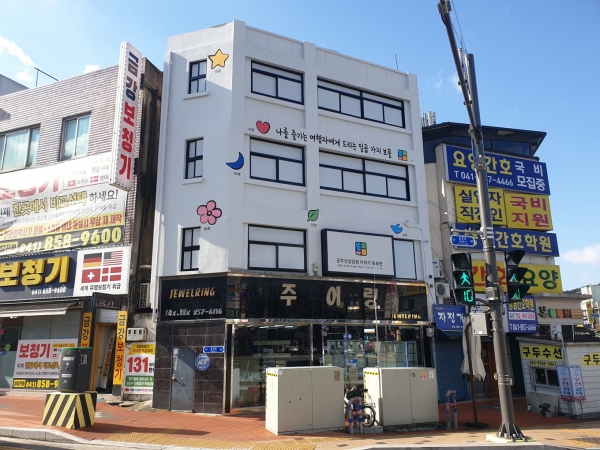 [충청뉴스큐] 공주시 원도심을 상징하는 중동교차로에 특별한 변화를 가져온 건물이 있어 눈길을 모으고 있다.