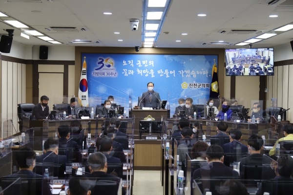 또한 진천군의원 일동이 공동으로 발의한 ‘지방의회 독립성 강화와 자치분권 실현을 위한‘지방의회법’제정 촉구’ 건의문을 임정구 부의장이 대표로 발표해 지방의회법의 제정의 중요성을 역설했다.