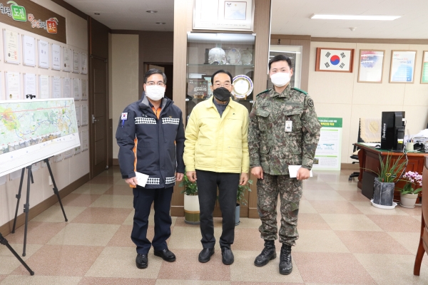 정 군수는 평소 지역 주민이 안심하고 생업에 종사할 수 있도록 국토방위에 전력을 다하는 군 장병과 의무소방원 및 사회복무 요원에게 위문품을 전달하고 그 동안의 노고를 위로했다.