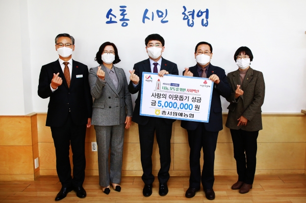 [충청뉴스큐]충서원예농협이 24일 서산시에 희망2022 나눔캠페인 성금 500만원을 기탁했다.