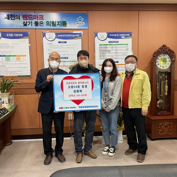심상일 의림지동장은 “힘든 상황 속에서도 학업에 전념할 수 있도록 큰 뜻을 내어준 것에 깊이 감사드리며 좋은 본보기가 되어 지역 내에 나눔 문화가 확산되기를 바란다”고 답했다.