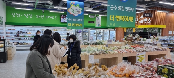 군은 지난 25일에도 청양먹거리직매장 유성점에서 3안 감동 중 ‘안심 소비’를 충족하기 위한 소비자 선호도를 조사했다.