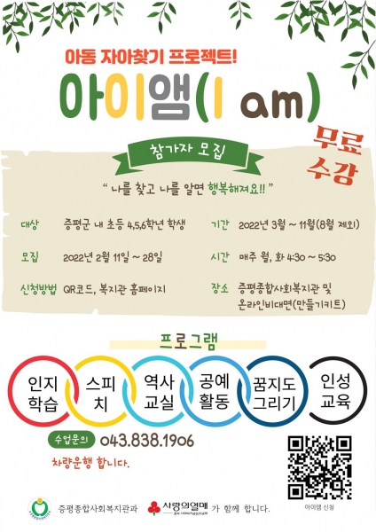 [충청뉴스큐] 증평종합사회복지관는 아동 자아찾기 프로젝트“아이앰”을 운영한다.
