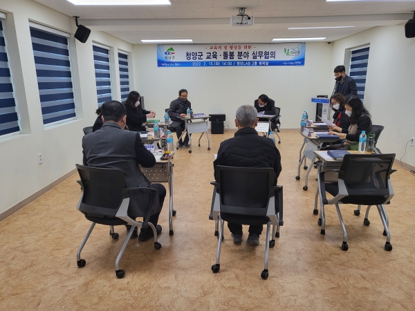 [충청뉴스큐] 청양군이 지난 15일 청양읍 소재 청년LAB 회의실에서 청양군 정책자문위원, 교육지원청 장학사, 고교 교사, 담당 공무원 등이 참석한 가운데 군내 학생들을 위한 교육·돌봄 분야 실무협의를 가졌다.
