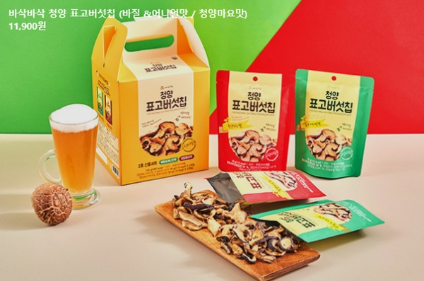 2가지 맛으로 출시되는 표고버섯 칩은 4종 1세트로 구성돼 선물용으로도 제격이다.